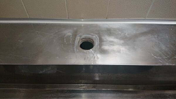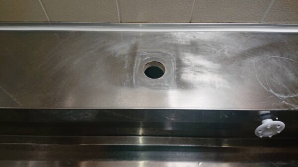 今回はシングルレバーを取り付けるにあたり、温水器の配管が2本になるため、水栓を取り付ける部分の穴を少し拡張しました。